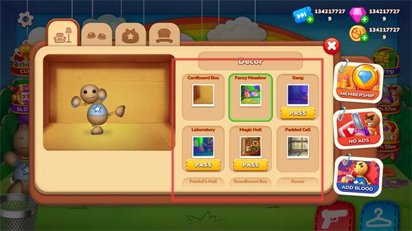 4、打開【Decor】界面,選擇【Fancy-Meadow】等場景樣式,更換木偶人的所處環境。