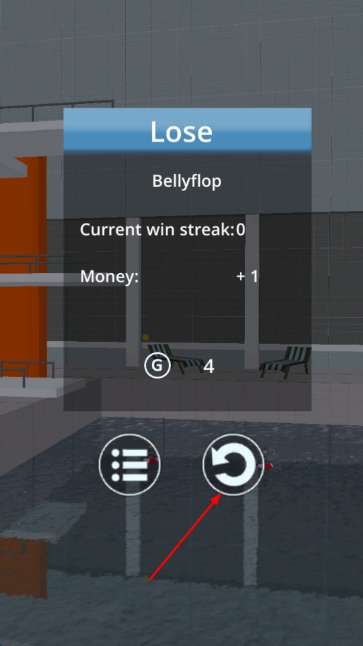 4、若挑戰失敗,點擊重新開始按鈕,可再次嘗試跳水挑戰。