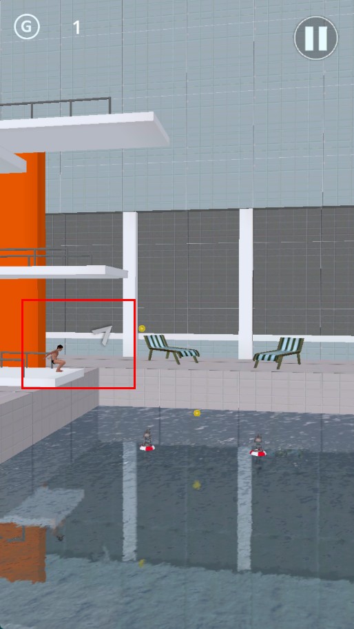 2、在跳水場景,通過操作讓人物從跳板躍下。
