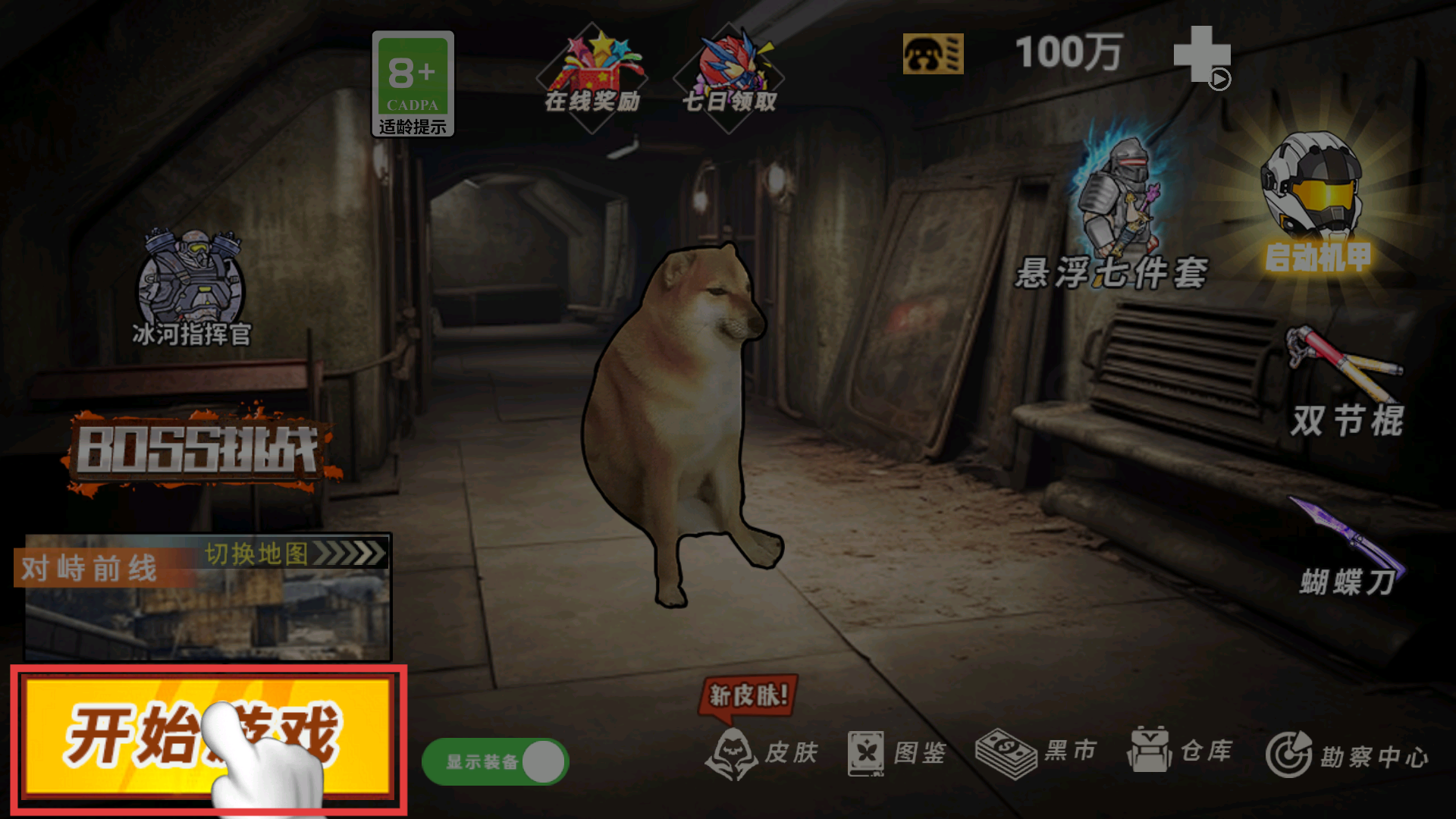 1、進入游戲前,點擊【開始游戲】按鈕,快速進入對戰模式,為后續搜集裝備做好準備。