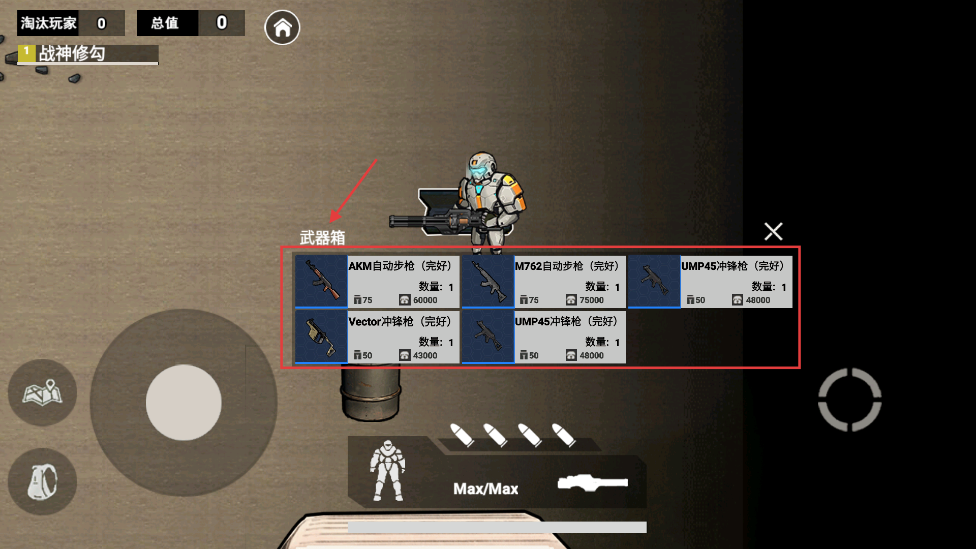 2、打開【武器箱】時,優先選擇【AKM自動步槍-完好】或【M762自動步槍-完好】,提升初始戰斗火力,助力前期壓制敵人。