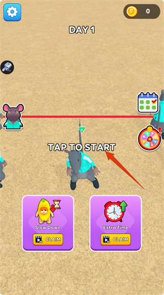 1、游戲開始時,點擊【TAPTOSTART】,即可開啟【DAY1】的游戲挑戰,進入游戲場景。