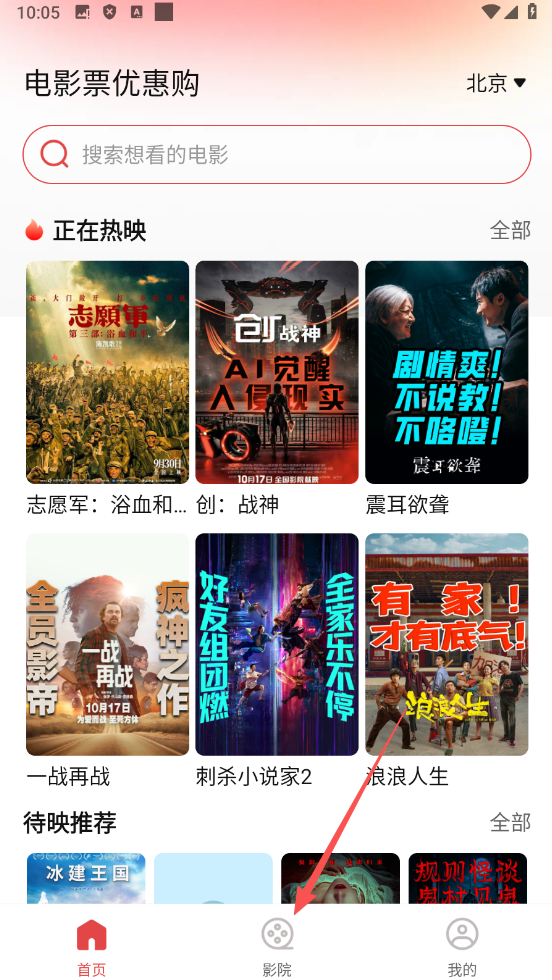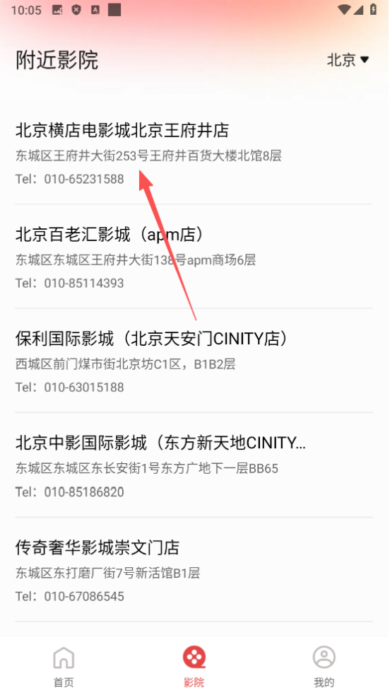 1、點擊底部【影院】,進入附近影院列表頁面。