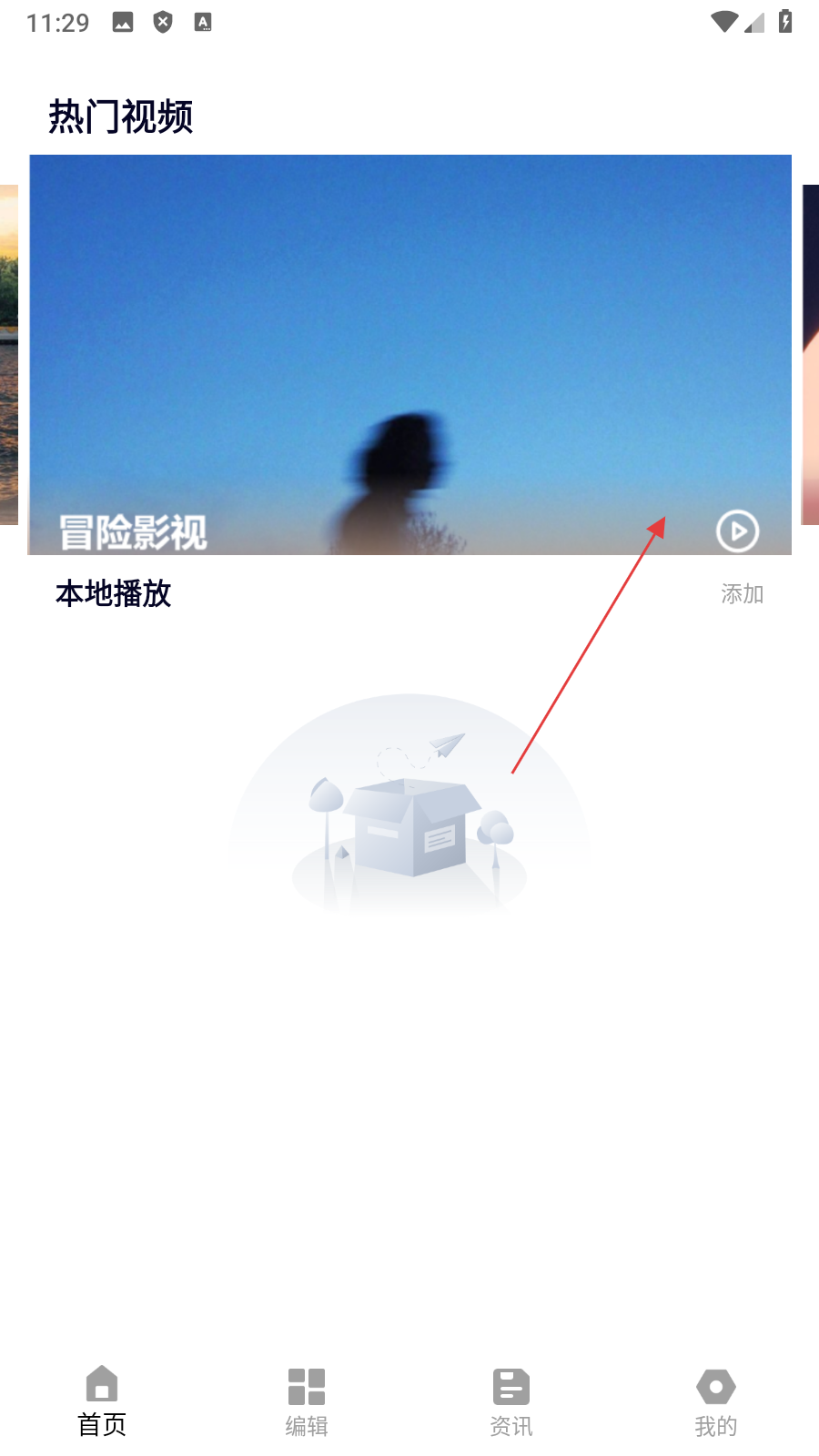 1、點擊【冒險影視】視頻,進入劇情電影列表頁面。