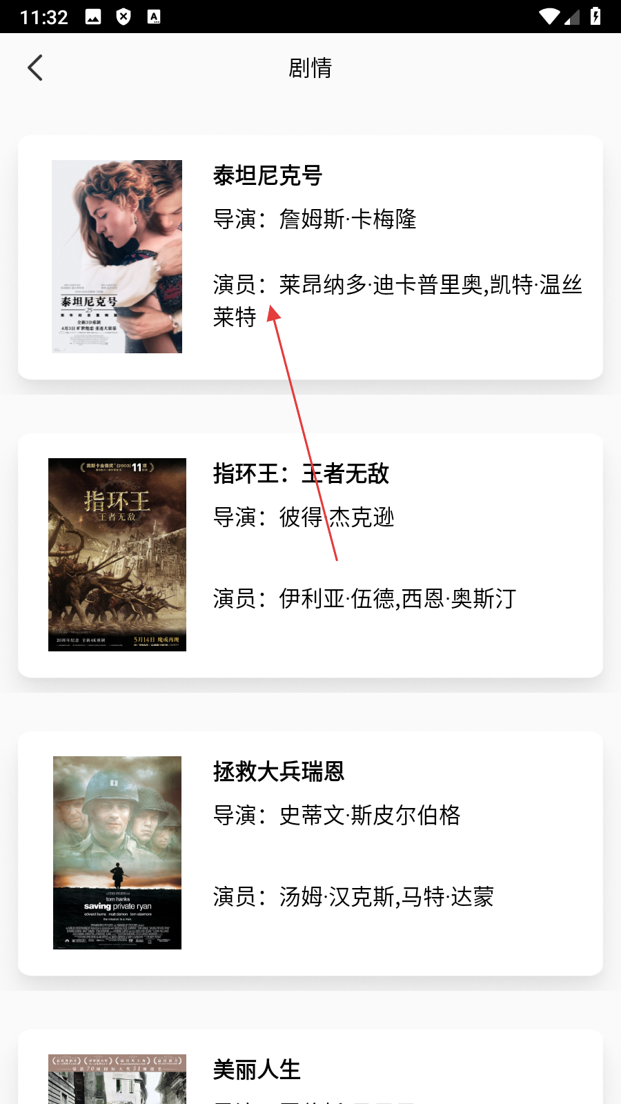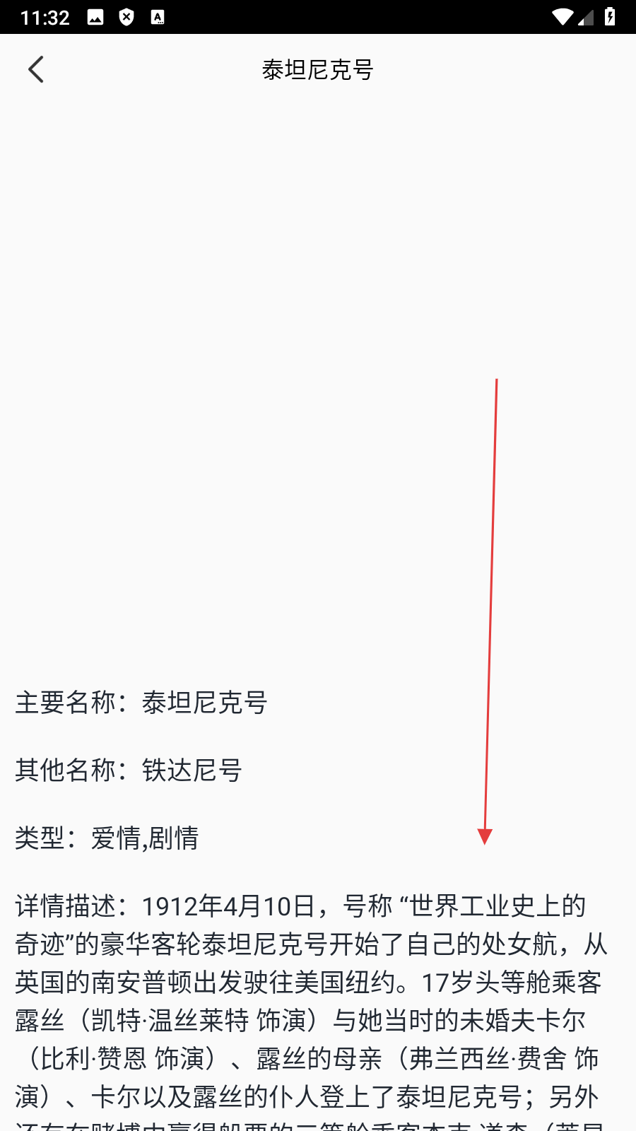 2、在劇情電影列表頁面點擊【泰坦尼克號】,進入該電影詳情頁面。