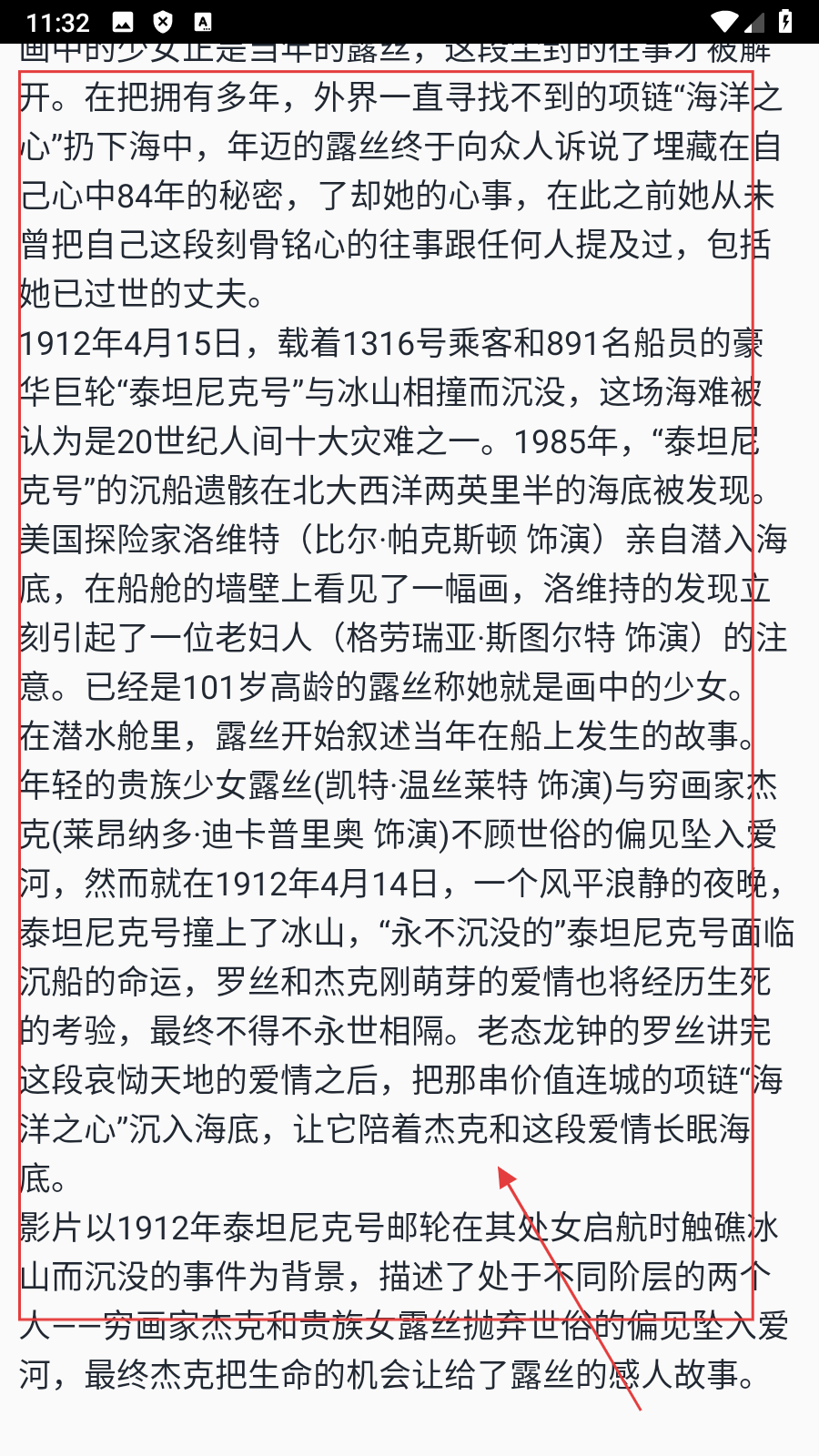 3、在電影詳情頁面,【向下滑動屏幕】來到劇情介紹部分。