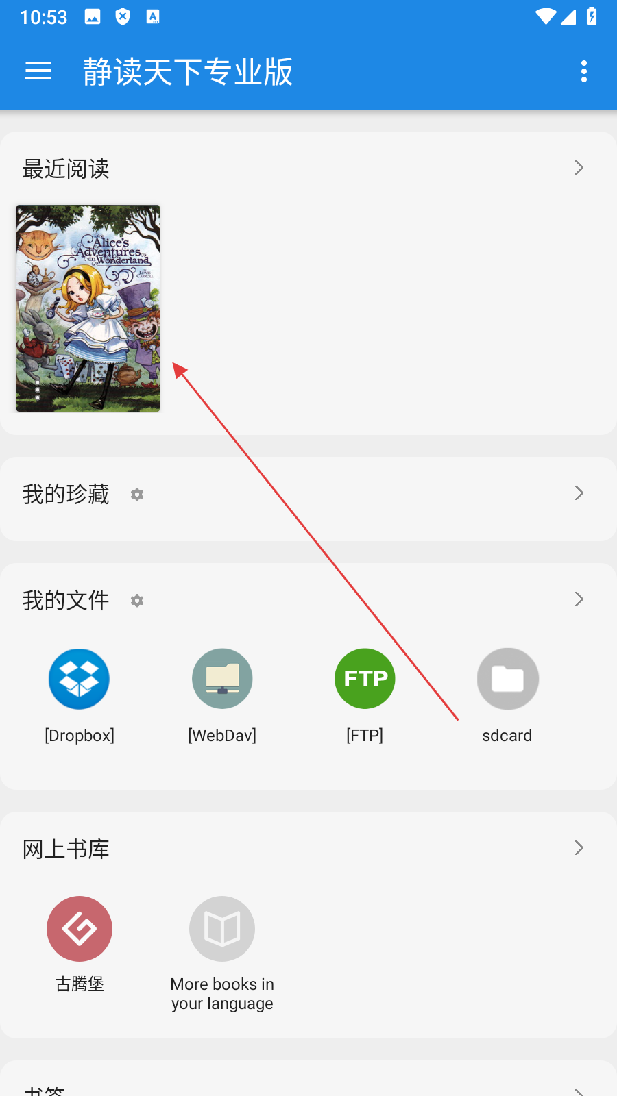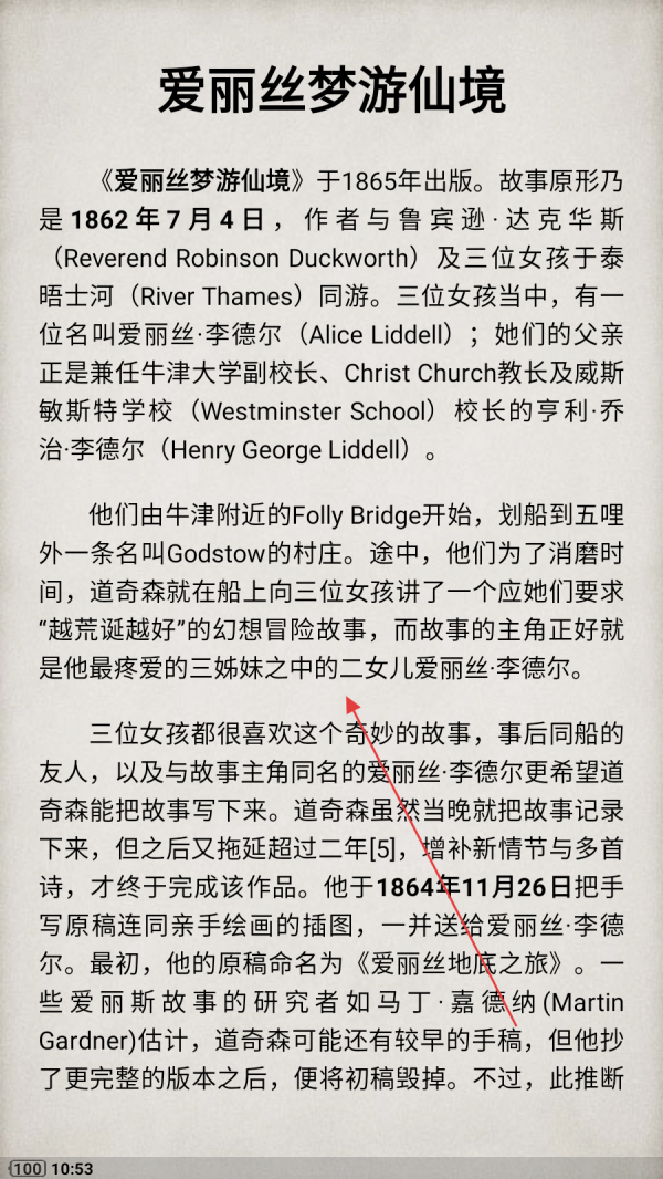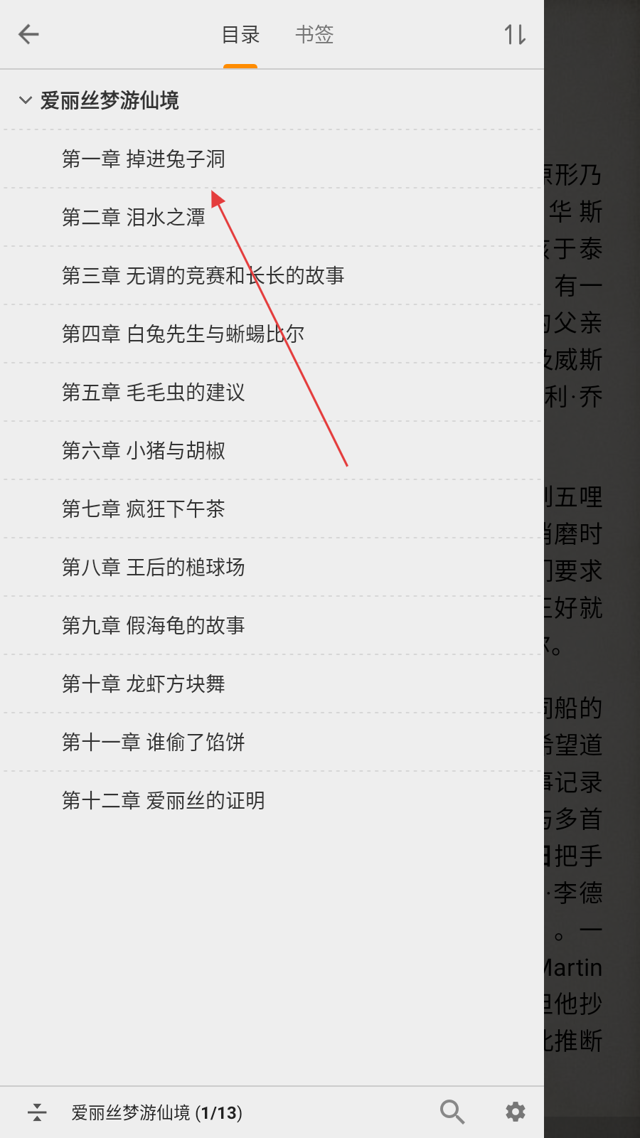 1、選擇【愛麗絲夢游仙境】書籍,進入書籍頁面。