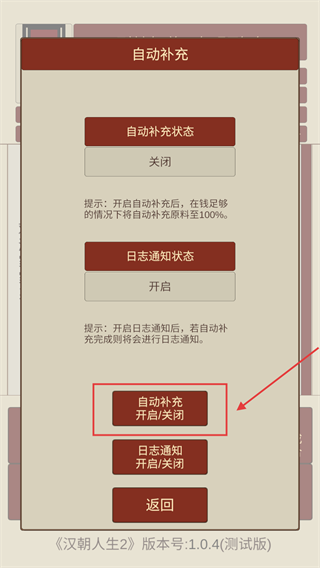4、開啟【自動補充】功能,資金充足時自動補原料保證作坊持續生產,提升經營效率節省操作時間。
