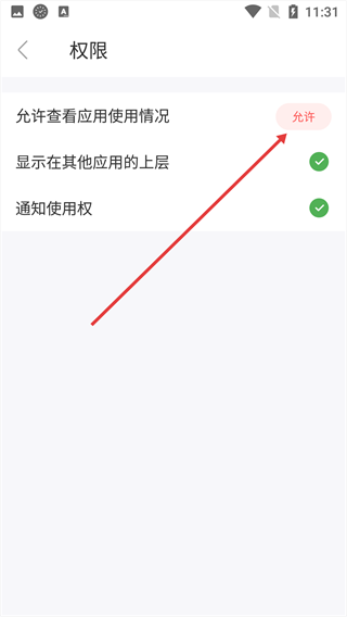 3、進入權限設置頁面,點擊【允許查看應用使用情況】右側的【允許】按鈕。
