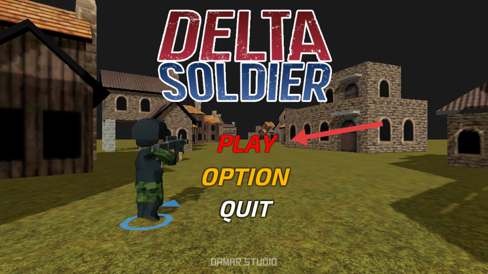 1、游戲主菜單界面,點擊【PLAY】選項開始游戲,注意界面上的【DELTA-SOLDIER】標題和其他功能按鈕。