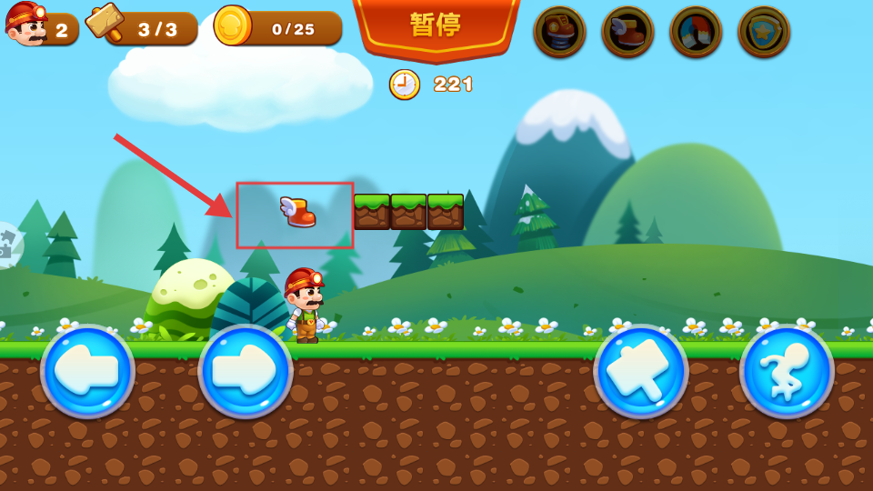 2、關卡中看到空中的【紅色-鞋子道具】要及時收集,能提升角色移動速度,幫助更快前進。