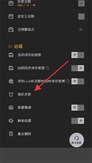 2、找到【相機(jī)皮膚】選項(xiàng)并點(diǎn)擊,進(jìn)入皮膚選擇界面。