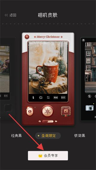 3、在相機(jī)皮膚界面,可看到默認(rèn)的【經(jīng)典黑】皮膚,同時(shí)顯示其他可選皮膚(如圣誕限定)。