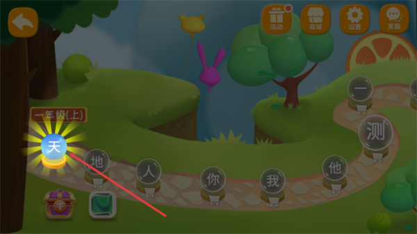 2、在學習關卡界面,找到【一年級(上)】對應的【天】字按鈕,點擊該按鈕即可進入該字的學習環節。