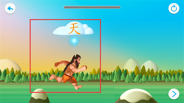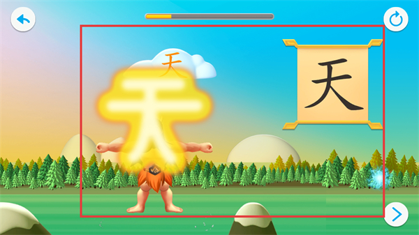 3、進入【天】字學習頁后,會呈現含【天】字的動畫場景,可通過該場景直觀理解字的關聯內容。