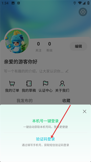 2、彈出登錄彈窗,選擇【驗證碼登錄】選項。