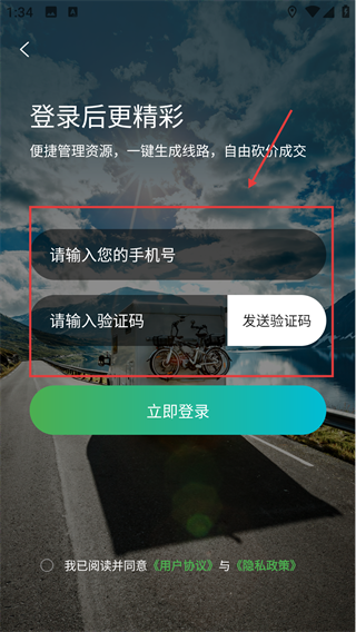 3、在驗證碼登錄頁面,填寫手機號和驗證碼。
