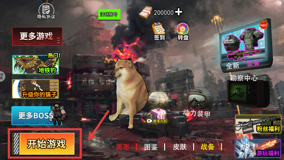 1、找到界面中的【開始游戲】按鈕點擊,即可進入游戲主界面,準備操控穿戴動力機甲的修勾開啟迷宮冒險。
