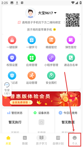 1、在這里可以快速的與孩子的手機進行綁定;