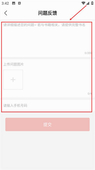 3、依次填寫問題描述內(nèi)容、上傳問題相關(guān)圖片、輸入聯(lián)系用的手機號碼,完善反饋所需信息。