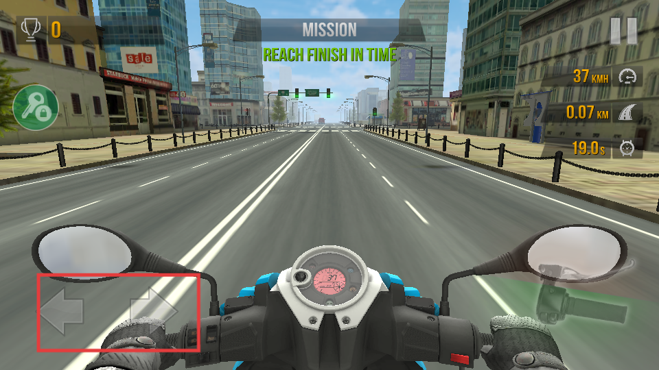 4、使用左右箭頭控件,控制摩托車方向,在道路上安全行駛。