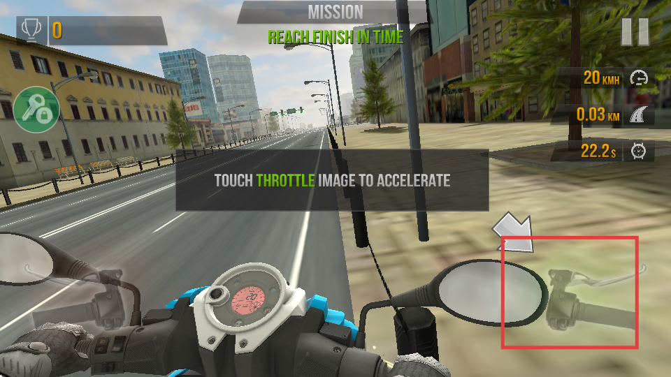 3、觸摸油門圖像,控制摩托車加速,推進游戲進程。