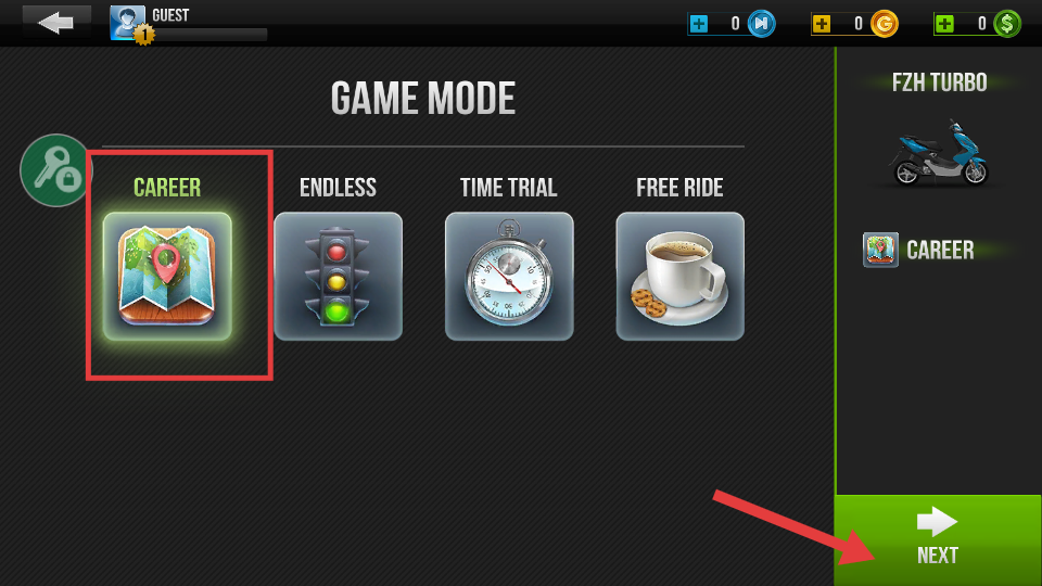 2、選擇【CAREER】模式,點擊【NEXT】,開始職業模式的游戲體驗。