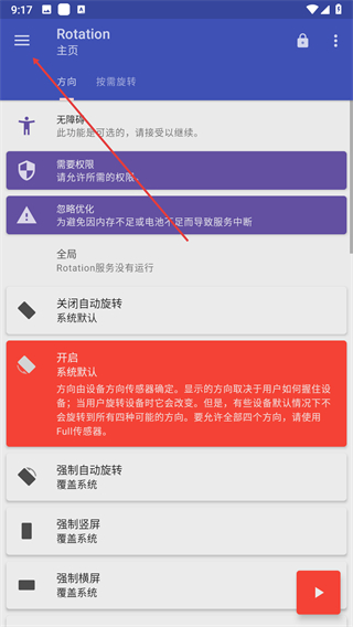 1、進入到rotation屏幕方向管理器主頁面中,能夠看到這里提供了多種屏幕方向設置。