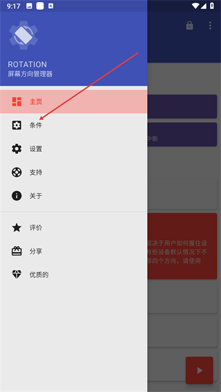 2、在功能列表里,點擊條件選項,進入應用的條件設置頁面。
