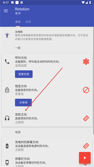 3、在條件設置頁面中,找到耳機方向選項,點擊打開方向選擇菜單。
