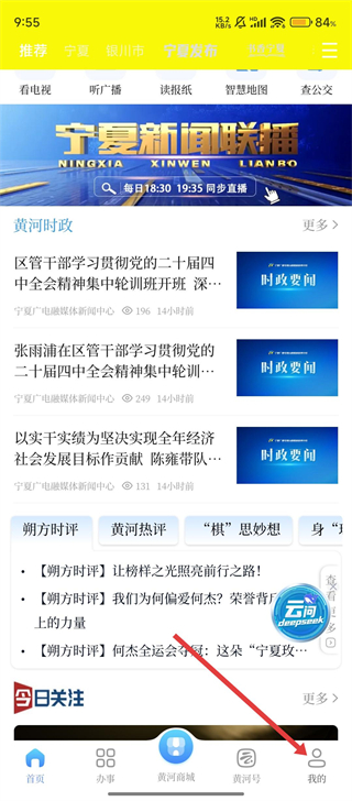 1、打開黃河云視,點擊底部的【我的】進入個人頁面吧。