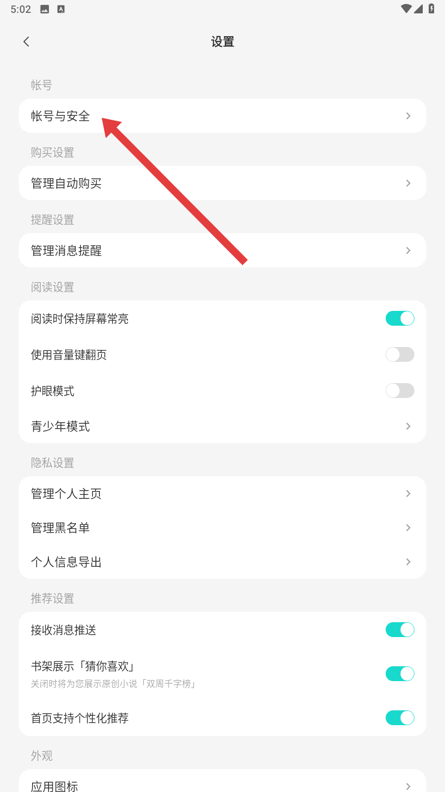 2、在設置頁面,點擊【帳號與安全】選項,進入賬號安全相關界面啦。