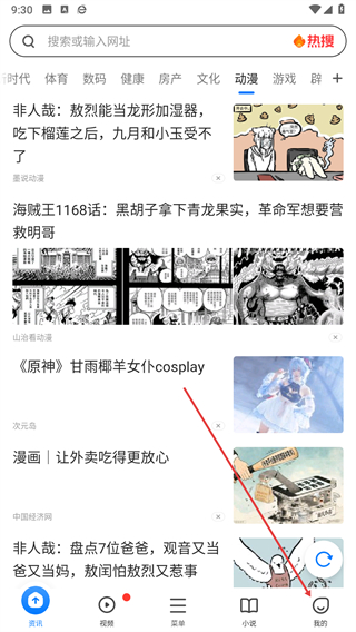 1、打開360瀏覽器資訊頁面,點擊底部導航欄中的我的選項。