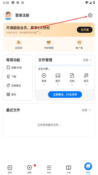 2、在我的頁面右上角找到設置圖標,點擊進入設置界面。