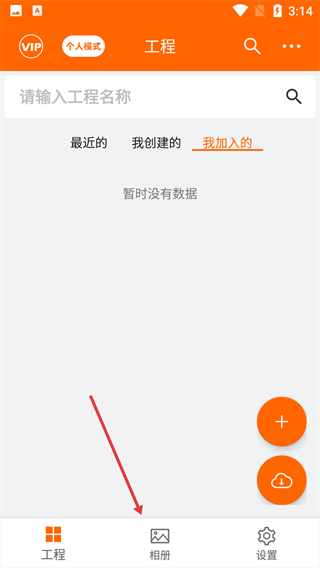 1.打開工程相機app,進入主頁面,點擊右側(cè)“+”創(chuàng)建工程并填寫項目名稱。