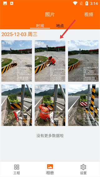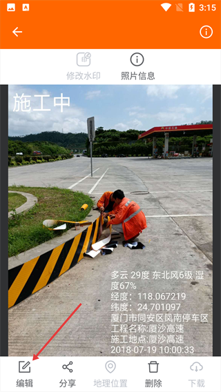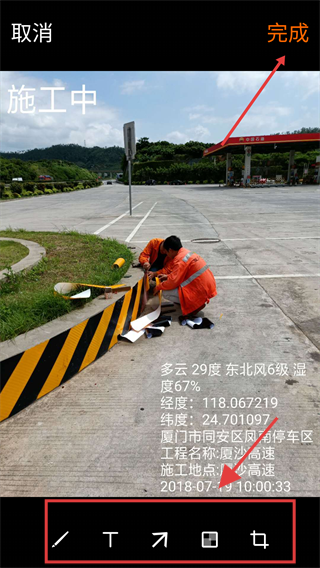 2.添加水印,包括施工記號、經(jīng)緯度、海拔、方位角度、地理位置、天氣、工程信息、自定義備注等,多種行業(yè)風格水印可選。