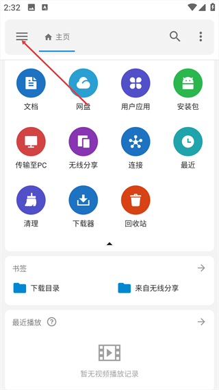 1、點擊左上角的菜單按鈕,展開功能分類的菜單列表。