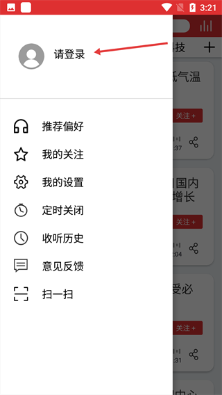 2、在側邊欄菜單中,點擊【請登錄】選項,進入手機快捷登錄頁面。
