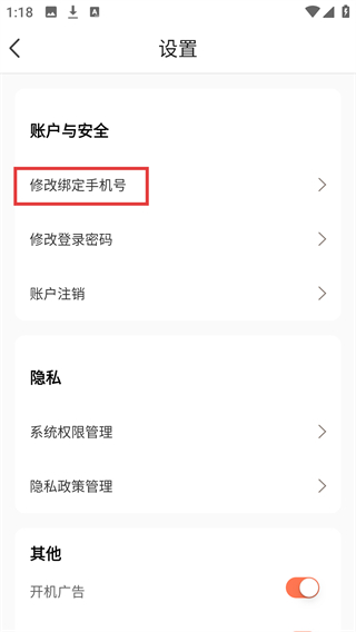 3、在【設置】頁的【賬戶與安全】板塊,可選擇【修改綁定手機號】【修改登錄密碼】等操作選項。