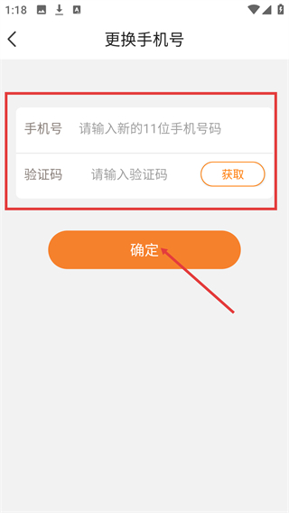 4、進入【更換手機號】頁,需輸入【新的11位手機號碼】,獲取并填寫【驗證碼】后點擊【確定】完成更換。