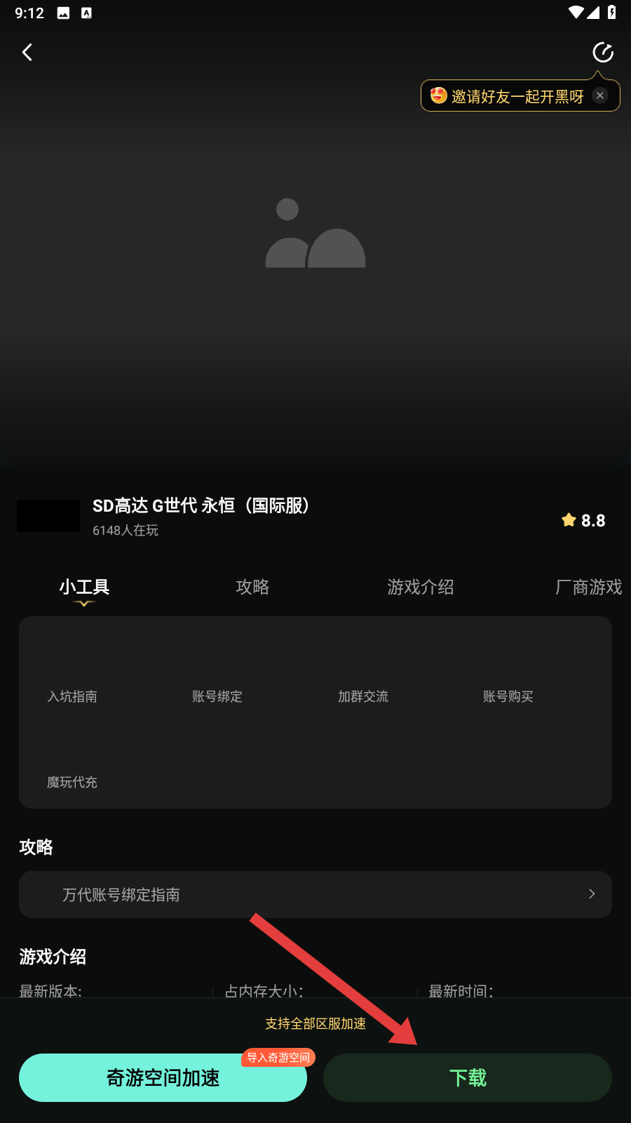 4、進入游戲詳情頁后,找到下方【下載】按鈕,點擊即可開始下載該軟件,輕松獲取心儀游戲啦。
