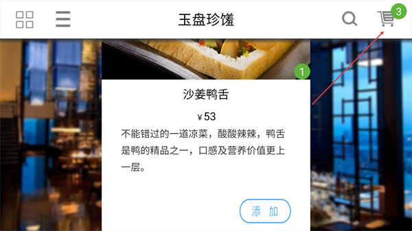3、完成菜品添加后,點擊右上角的購物車圖標。