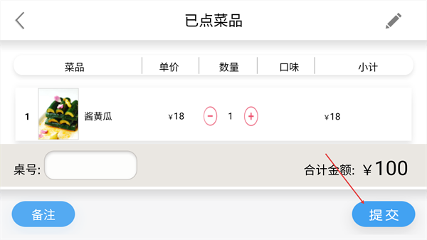 4、確認菜品、數量等信息無誤后,點擊“提交”按鈕,完成本次點餐操作。