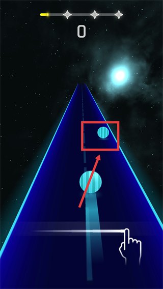 2、進入游戲后道路上會出現球體,需通過左右滑動屏幕控制球體移動,避開前方障礙。