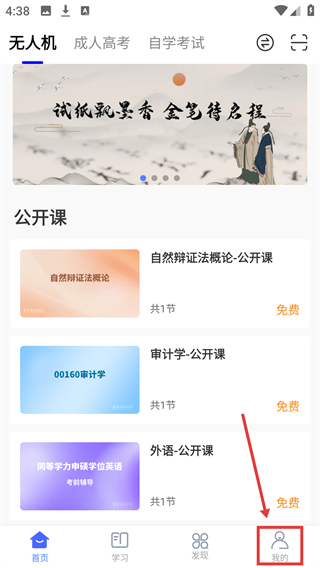 1、進入展示【公開課】等內容的頁面后,點擊底部導航欄的【我的】選項,進入對應的個人中心頁面。