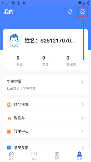 2、在個人中心頁面,找到右上角的【設置】圖標并點擊,進入相關功能的設置操作頁面。