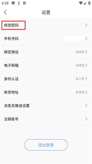 3、進入設置頁面后,在功能列表里找到【修改密碼】選項并點擊,進入密碼修改的專屬操作界面。