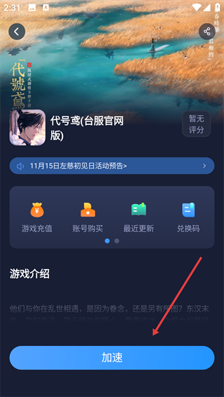3、點擊底部的“加速”按鈕,觸發游戲加速流程。