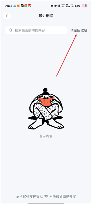 2、在功能列表中,點擊最近刪除選項,進入回收站頁面。