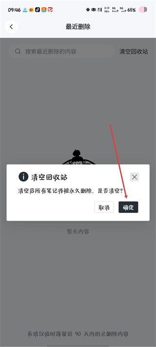4、在確認彈窗中,點擊確定,即可永久刪除回收站里的內容。